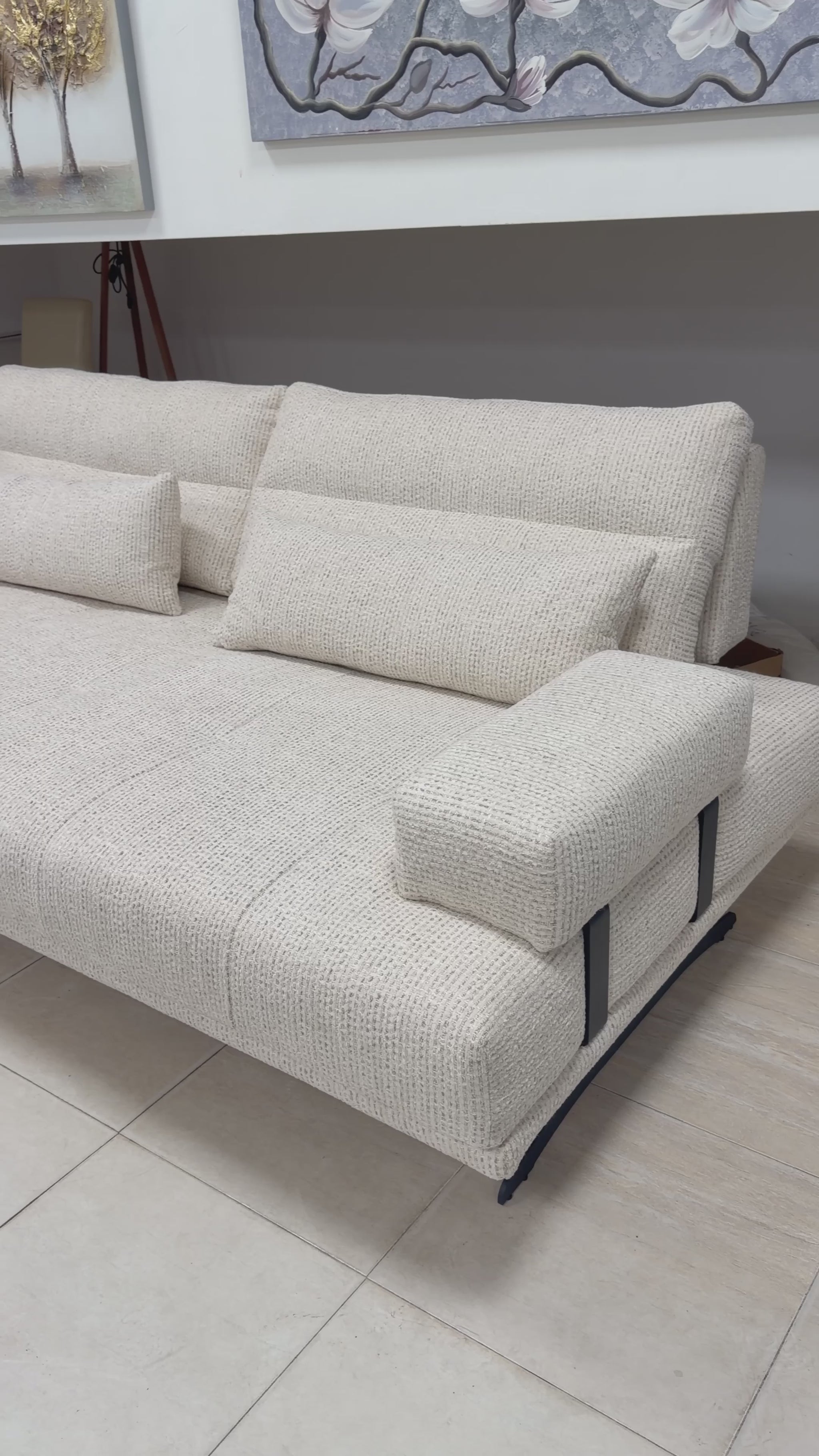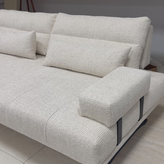 Ο γεωμετρικός σχεδιασμός, τα μοντέρνα μεταλλικά πόδια και τα μεγάλα, premium μαξιλάρια δημιουργούν ένα κομμάτι υψηλής αισθητικής που αναβαθμίζει κάθε μοντέρνο σπίτι.