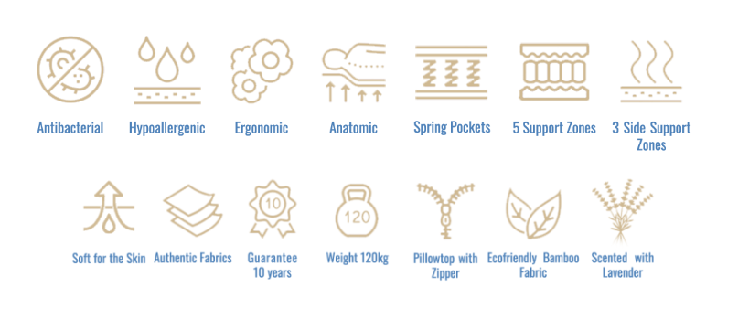 Οι 5 ζώνες στήριξης μέσης, οι 3 ζώνες πλευρικής υποστήριξης, τα ανεξάρτητα ελατήρια Pocket Springs και τα υψηλής απόδοσης εργονομικά υλικά αφρού ενισχύουν σημαντικά τις ανατομικές και εργονομικές ιδιότητες του στρώματος.